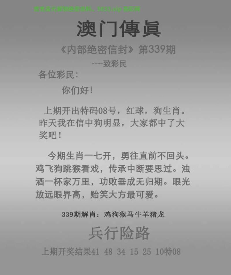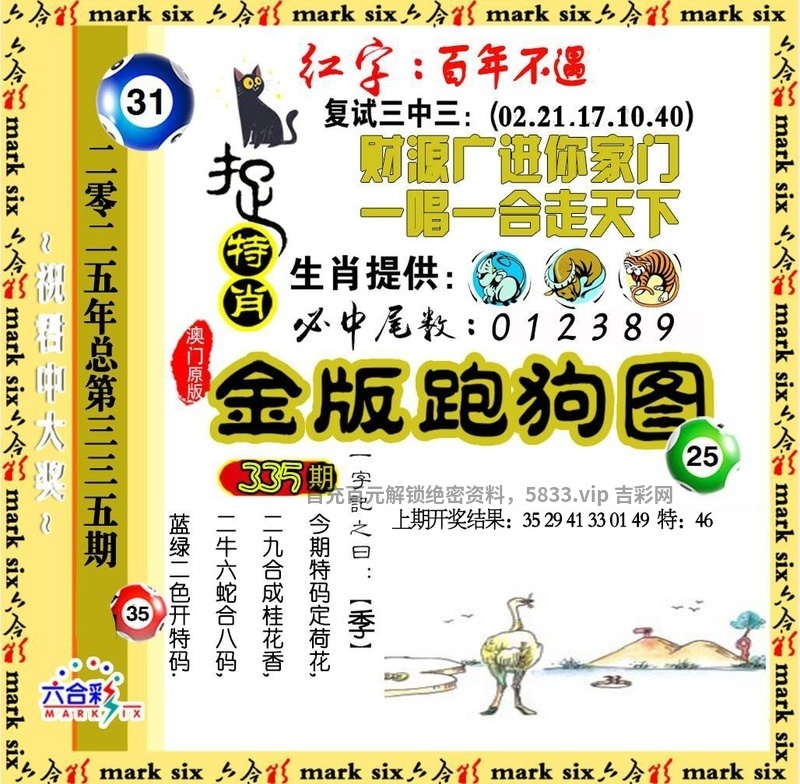 | 335期:正版【猜特输尽光】开狗44准 【今期买鸡输尽光,八面仙歌心情悦】 |