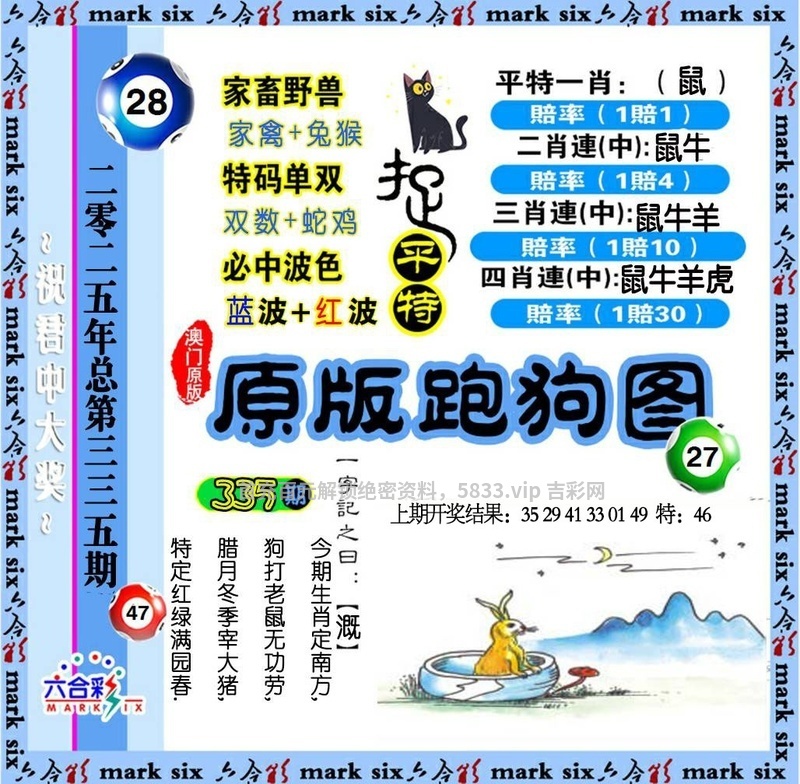 | 335期吉【马蛇兔龙】凶【鼠狗牛猪】√ |