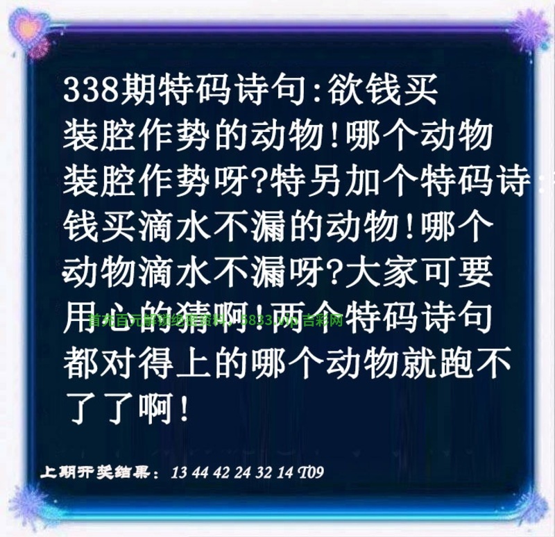 | 338期:正版【猜特输尽光】开狗08准 【今期买猪输尽光,份量斟酌言九鼎】 |